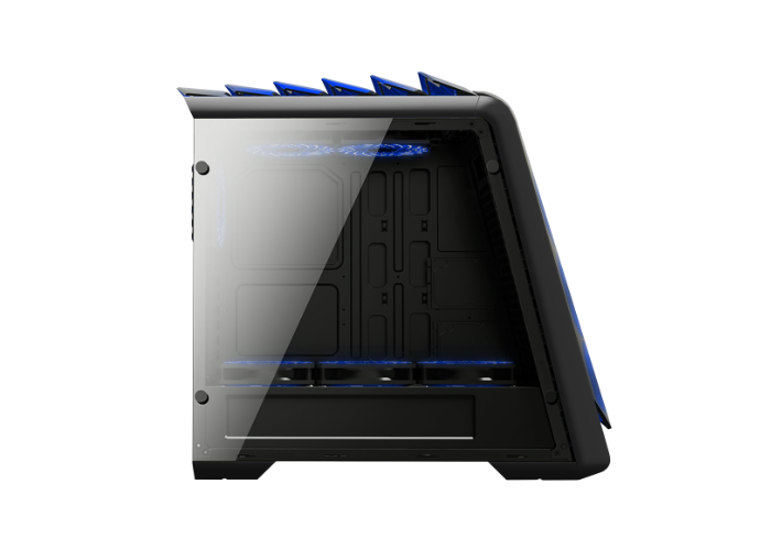 Si tratta di un prodotto di altissima qualita' e design ricercatissimo : il laterale e' in vetro, il frontale e' particolare come anche la parte superiore formata da un set di pannelli trasparenti che compongono una sorta di spina dorsale. La struttura e' robustissima ed ha spessore di ben 0.8mm. Riguardo le ventole se ne possono montare fino a 10 da 12cm e riguardo al raffreddamento a liquido e' possibile montarne due da 360mm. Massime possibilita' anche per la scheda video : fino a 360mm.